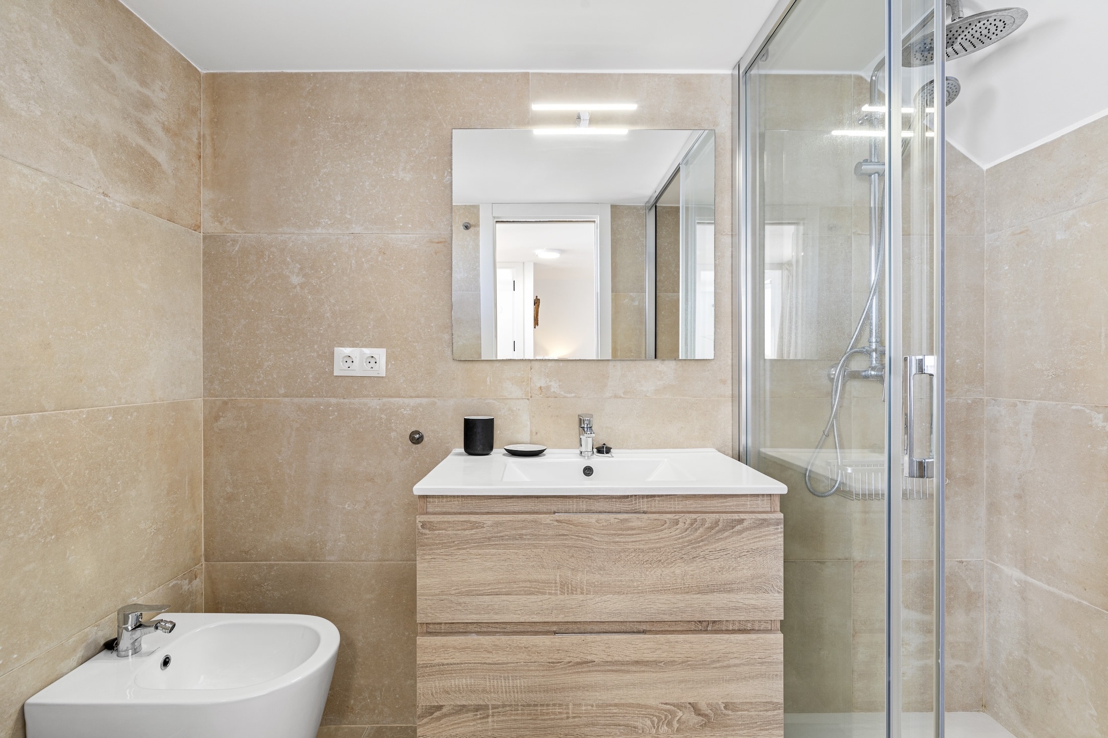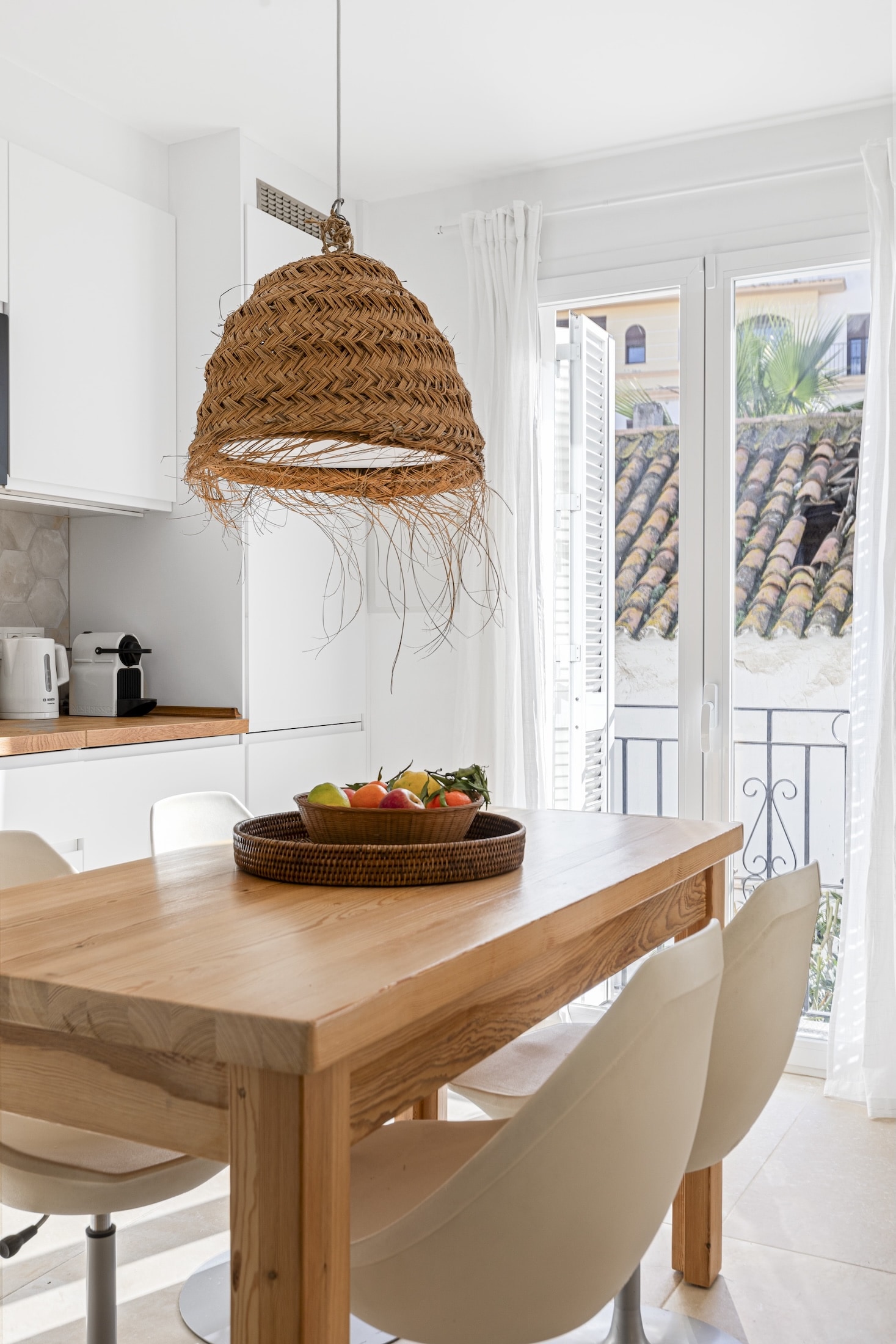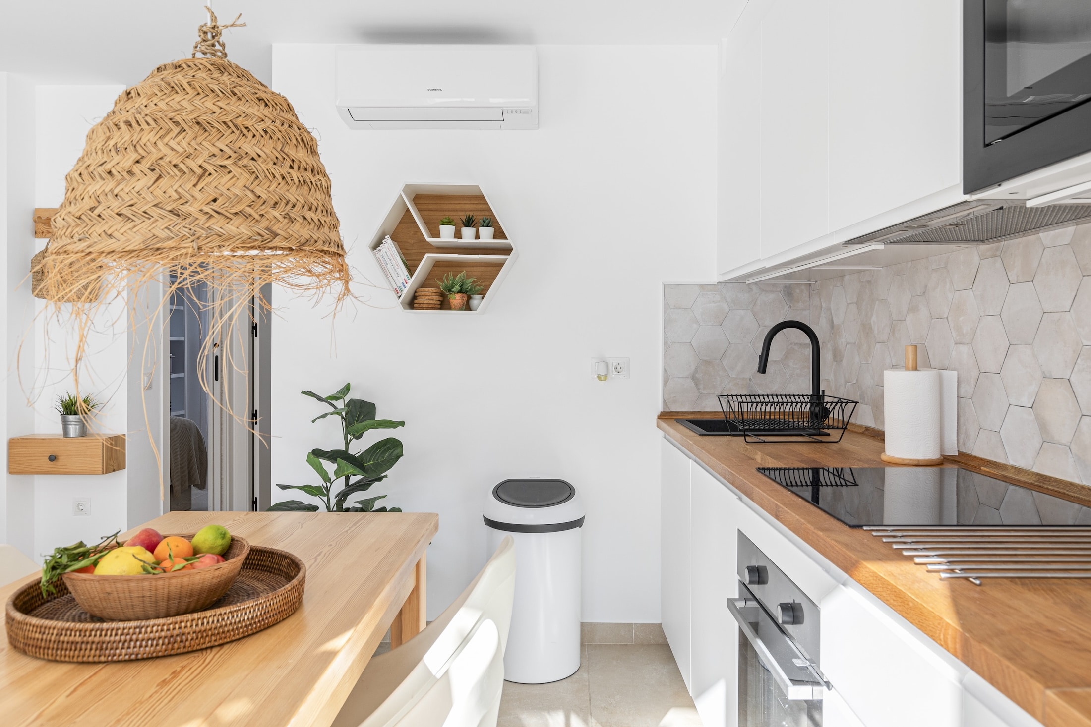 El salón es amplio y muy luminoso, con una cocina abierta moderna y totalmente equipada, perfecta tanto para un desayuno rápido como para disfrutar cocinando sin prisas. Además, tiene dos balcones muy agradables que dan a la calle Sevilla y llenan el espacio de luz.